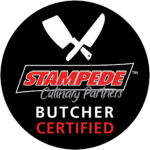 Brock Furlong and Krys Harbut, Vice President of Production designed and implemented Stampede’s Butcher Certification Program. The Butcher Certification program was designed to encourage production staff to hone their craft. An individual who earns this certificate has displayed a deeper understanding of meat fundamentals and cutting techniques, as well as an appreciation for food safety standards set by the United States Department of Agriculture.